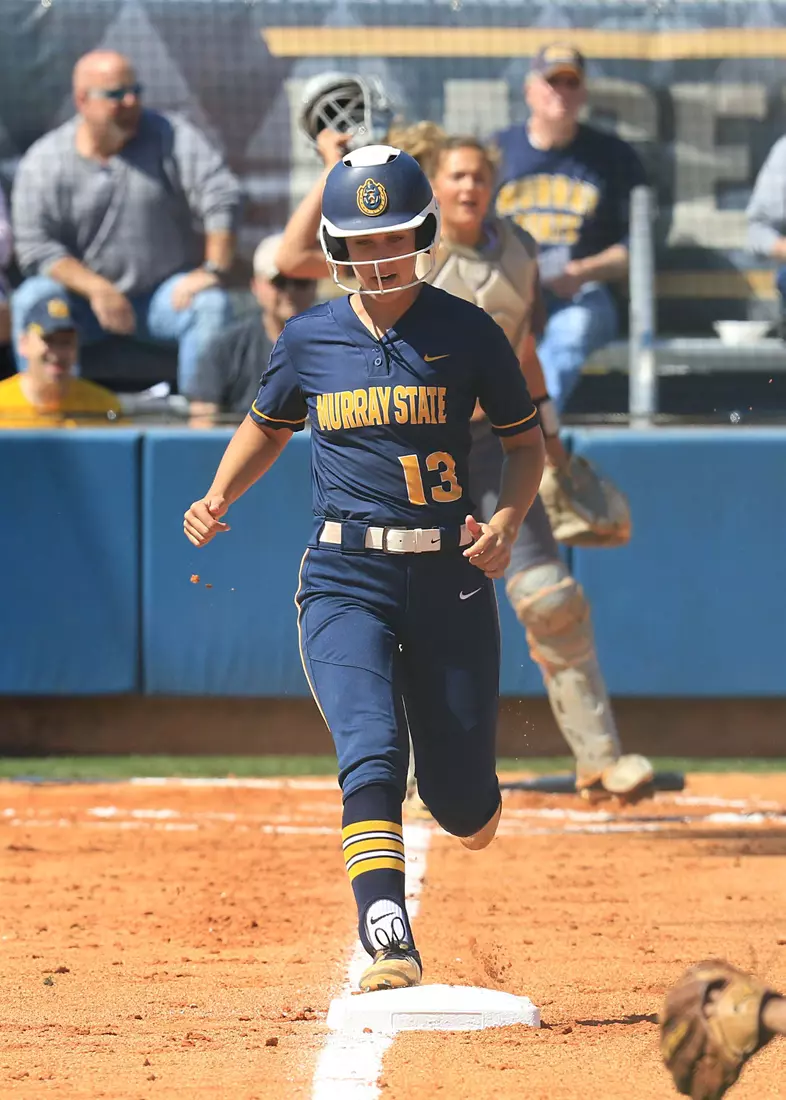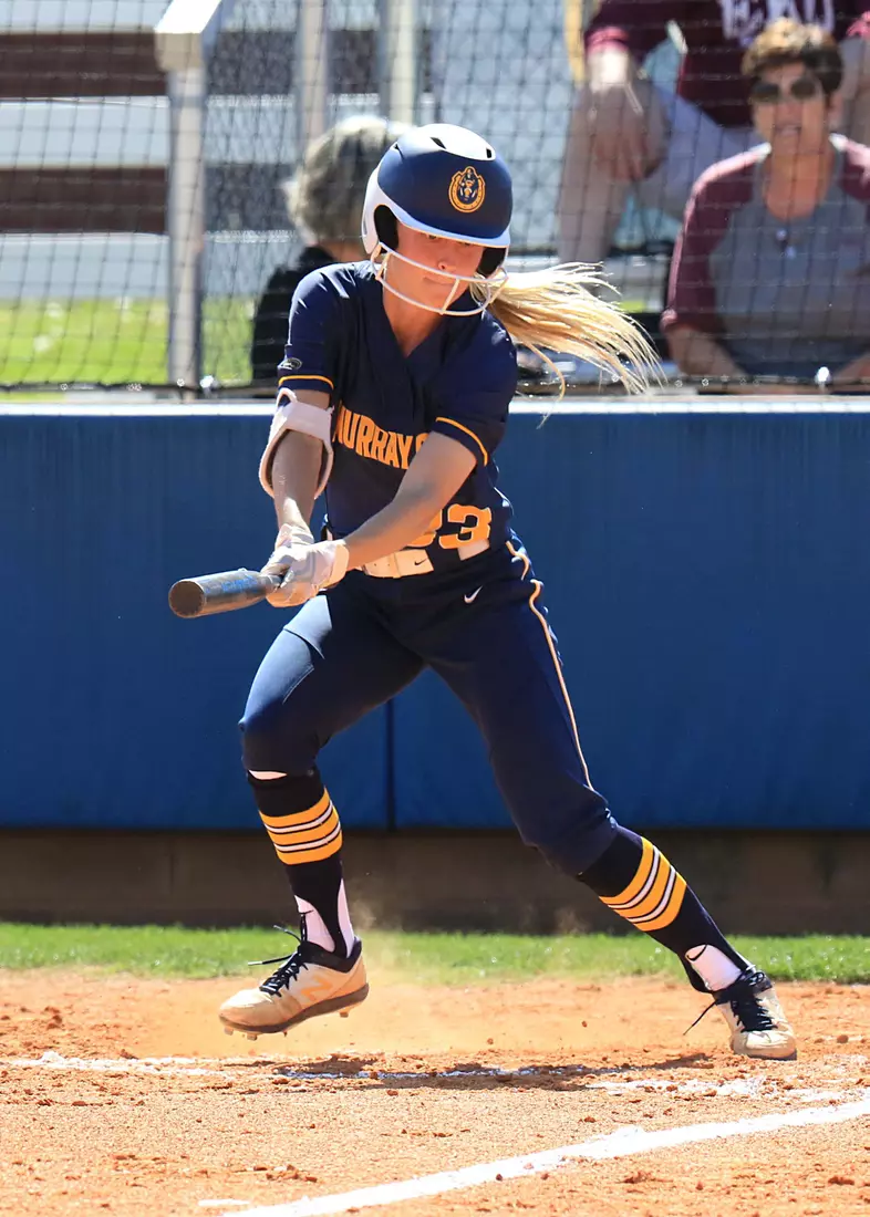 Senior Lexi Jones capped a four-run seventh inning rally with a single turned error that allowed the Murray State softball team to walk-off with a 7-6 win in game two of an OVC doubleheader against Eastern Kentucky Friday at Racer Field in Murray, Kentucky. The Colonels, however, did get the better of the Racers in game one of the twin bill by a score of 5-1.