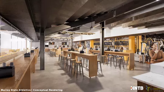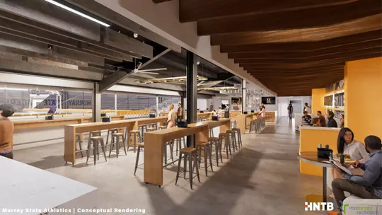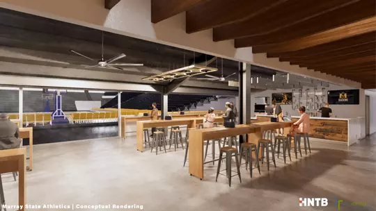 As part of the anticipated renovation plans, Murray State envisions the addition of a first-of-its-kind courtside bunker club for patrons to take in the game in a premium setting right on the baseline of the court. The club will feature a rustic Kentucky feel and will showcase a high-class bar and food offerings, comfortable seating, special pregame team experience and an unforgettable view of the court.
